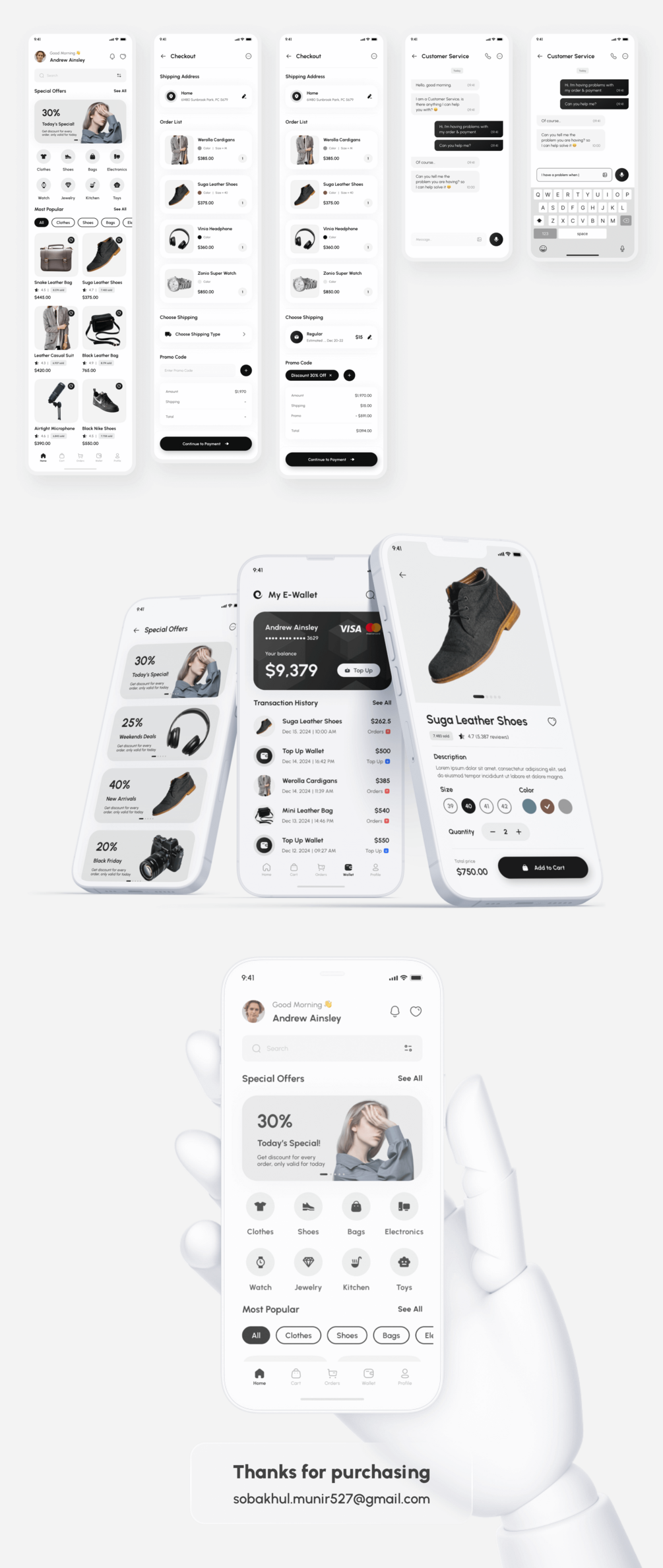 You'll get Evira - E-Commerce & Online Shop App UI Kit Figma with 192 screens + design system included. You will get it immediately after making a purchase. A download link will appear and you can download 100% editable UI Kit files without waiting time 🔥