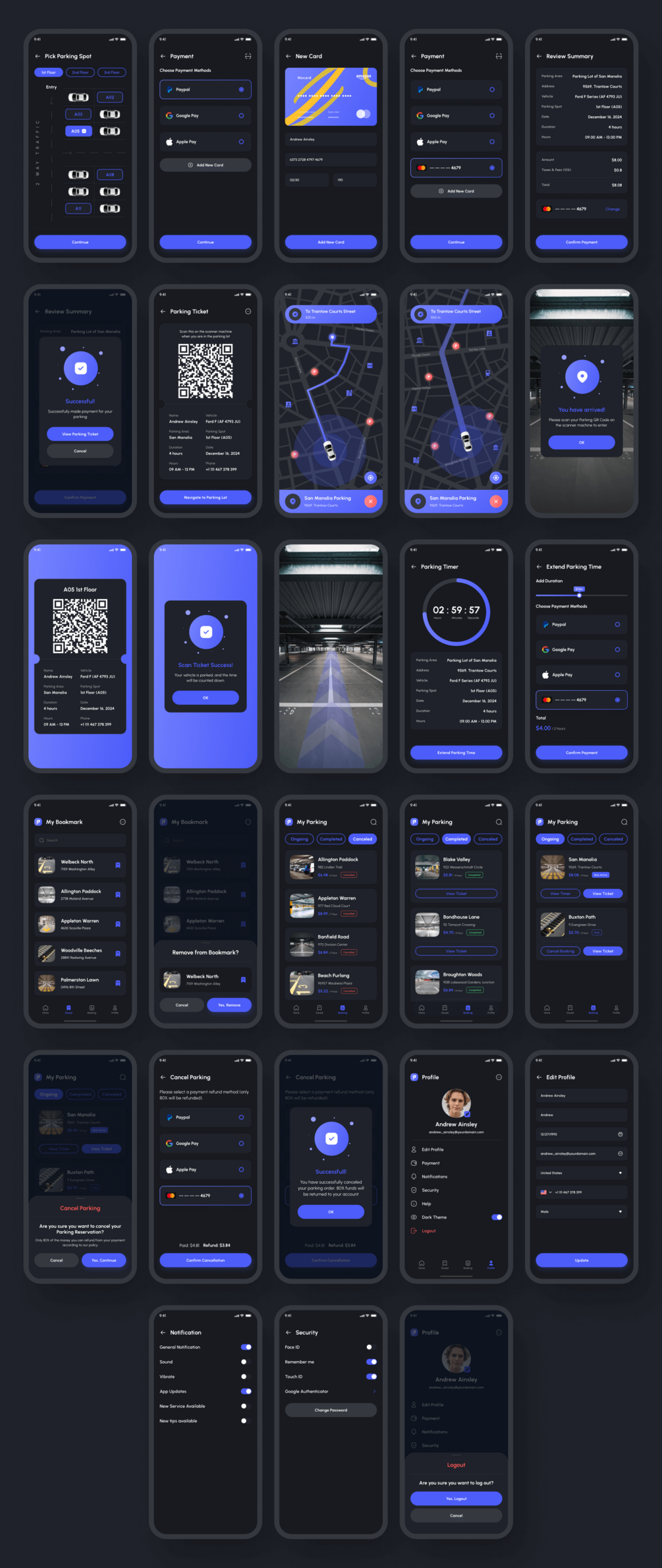 - Parking management (schedule & cancel booking, extend parking time, history, payment, & more)