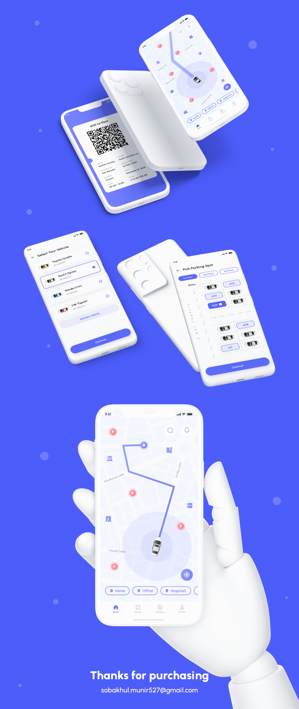 You'll get Parkir - Parking App UI Kit Figma with 116 screens + design system included. You will get it immediately after making a purchase. A download link will appear and you can download 100% editable UI Kit files without waiting time 🔥