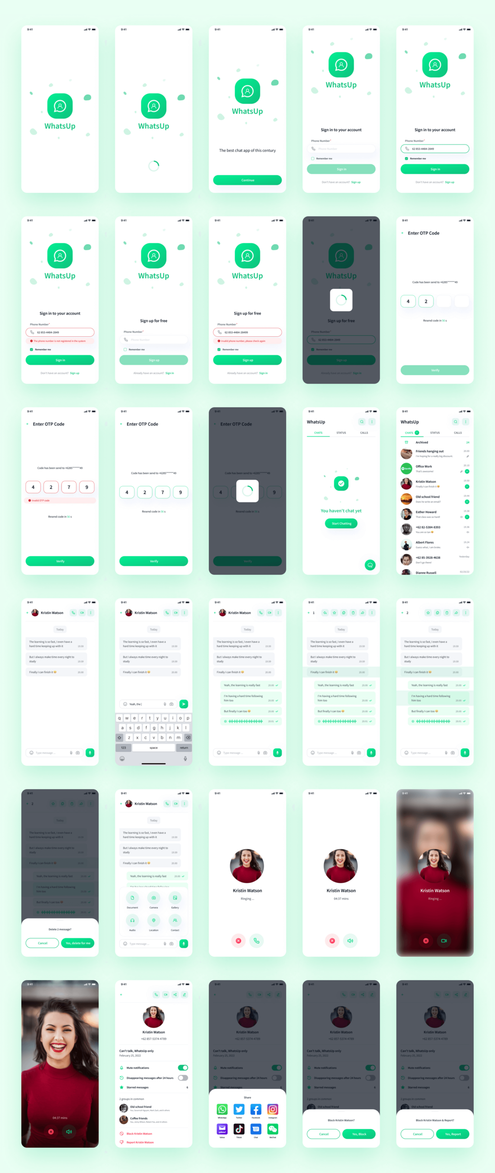 WhatsUp is a Premium and High-Quality Chatting Mobile App UI Kit with 166 Screens which is highly customizable. Designs are available in Figma. In addition, the design is also equipped with a version of Light & Dark Mode.