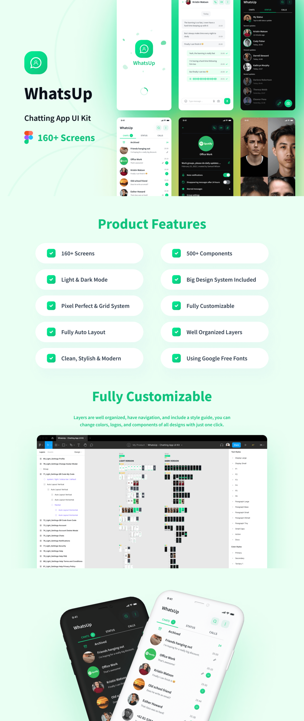 WhatsUp is designed in a trendy and modern way, with all layers well organized. WhatsUp is equipped with a large design system with 500+ components.