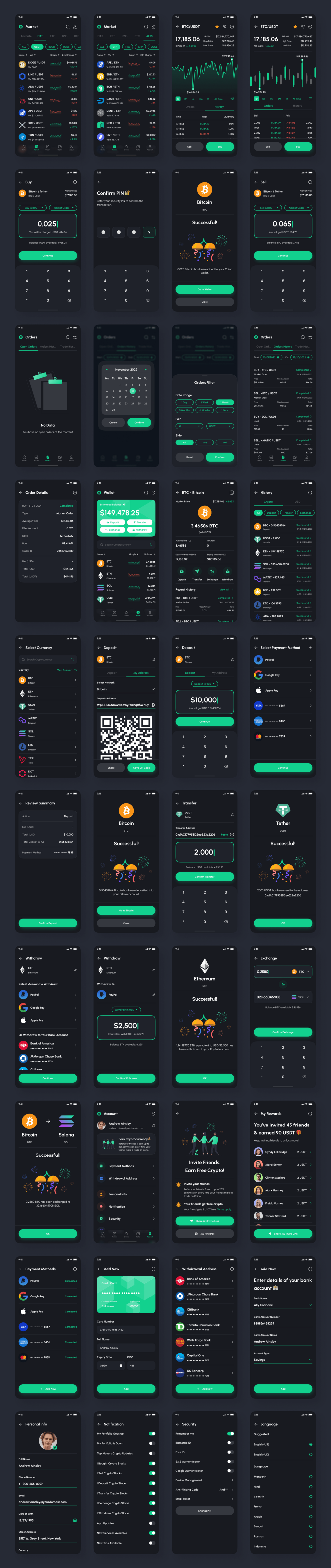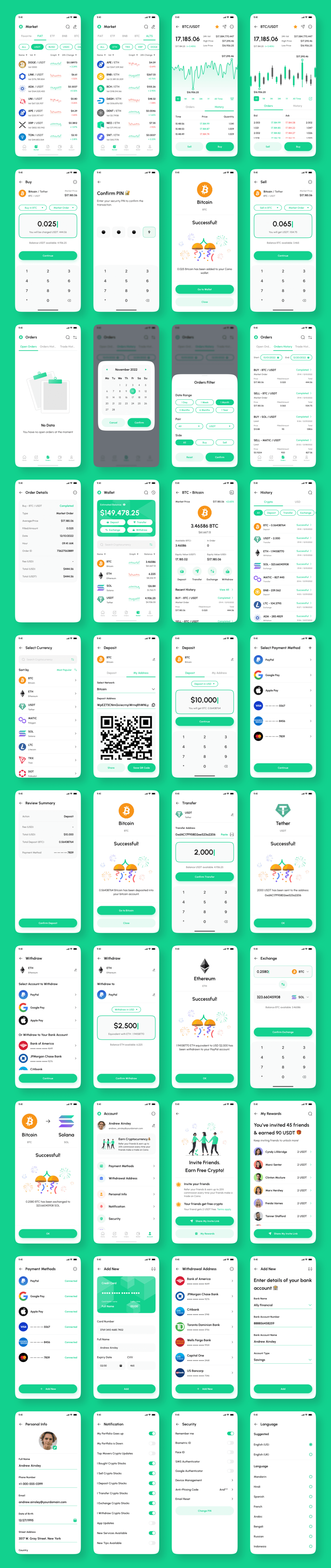 - Wallet (My Portfolio, Deposit, Transfer, Exchange, Withdraw, & Transaction History)