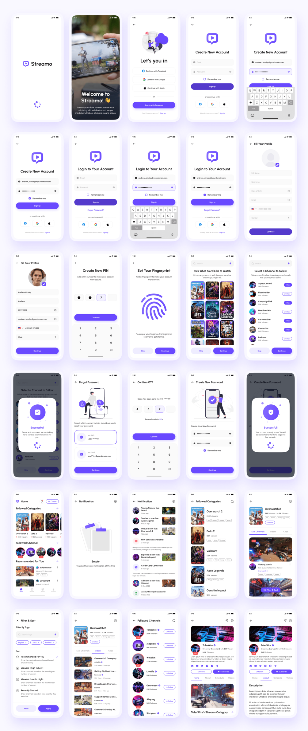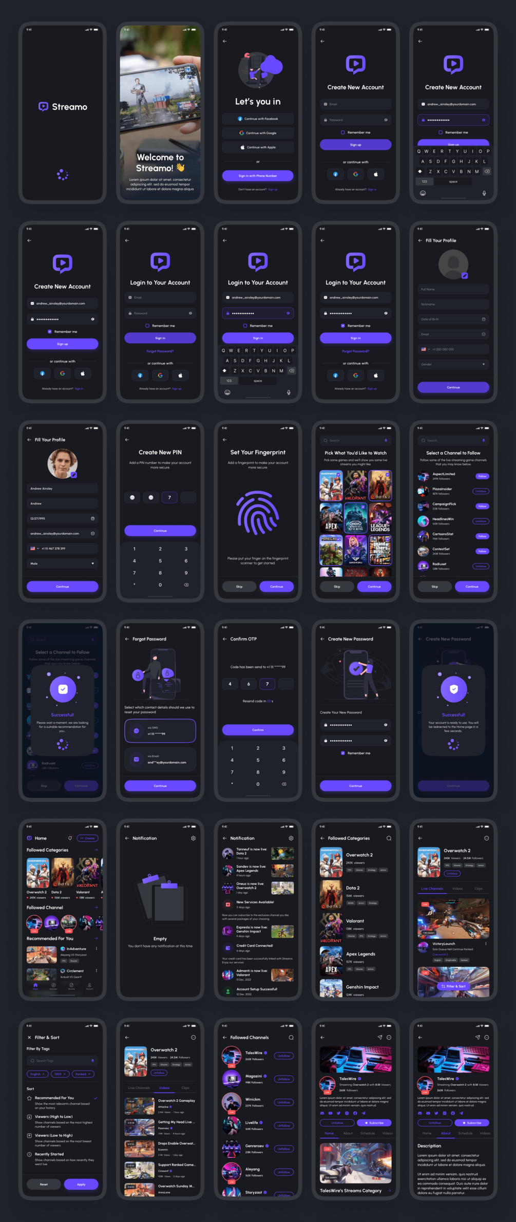 Streamo support for iOS/Android (design system included) and 156 screens which is 100% editable & customizable. Designs are available in Figma. In addition, the design is also equipped with a version of Light & Dark Theme.