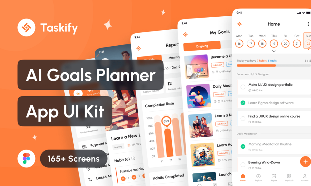 Taskify is a premium and high-quality UI Kit with a fully functional of AI goal planner mobile app. Supercharge your goal achievement with Taskify's AI-powered guidance. Easily create, manage, and edit your habits, tasks, and notes - all within a user-friendly interface. Explore our library of pre-made goals for inspiration, or customize them to perfectly fit your needs. Track your progress in detail with intuitive reports, allowing you to celebrate milestones and adjust your approach as needed. Taskify empowers you to achieve your goals efficiently and with less effort.